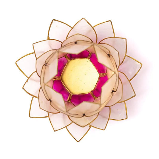Pink Lotus lysestage i Capiz skaller 15 cm