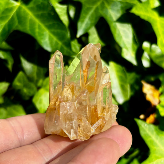 Bjergkrystal klynge, ultra klar og gylden 5 cm