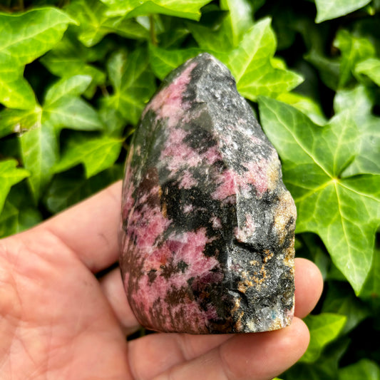 Rhodonit pink, en side poleret 9 cm, flot stående