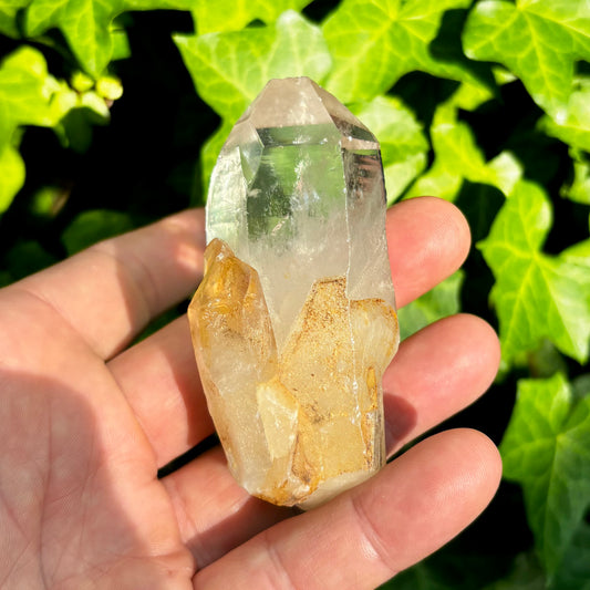Bjergkrystal spids, ultra klar, og gylden 8,5 cm