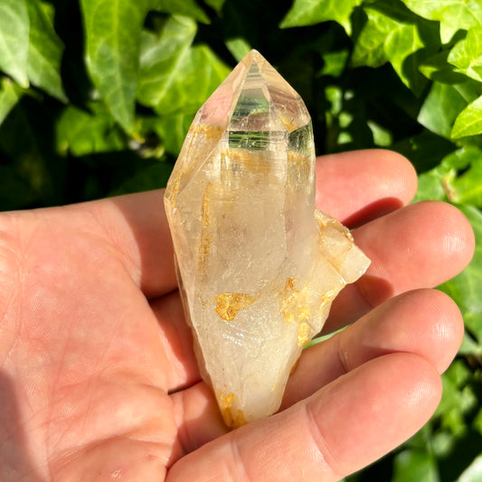 Bjergkrystal spids, ultra klar, særlig termination, og gylden 9 cm