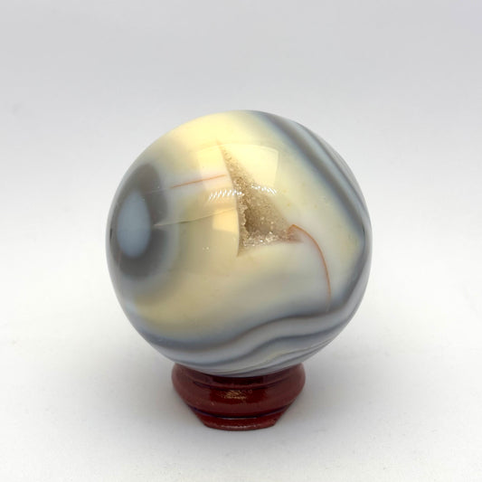 Kugle grå/blå agat 5,5 cm med lille grotte