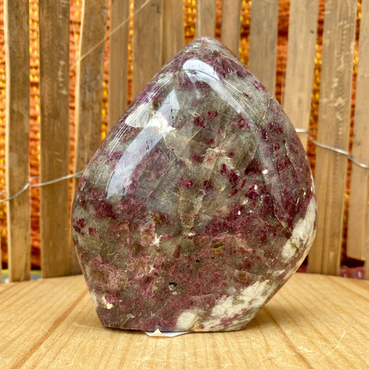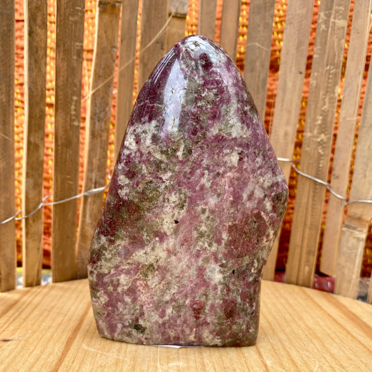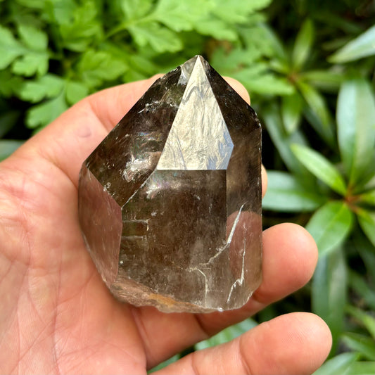 Særlig Bjergkrystal spids m. Turmalin poleret - 8 cm