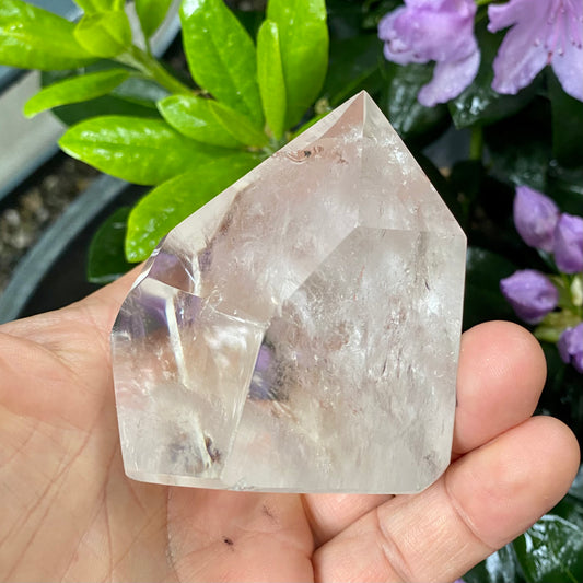 Bjergkrystal med Ametyst fantom spids poleret top - 7 cm