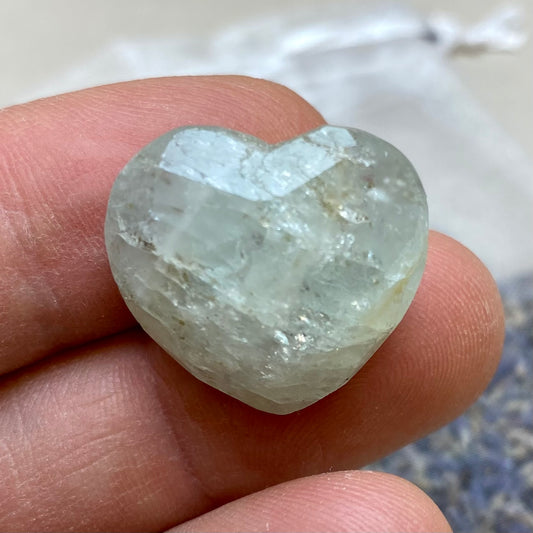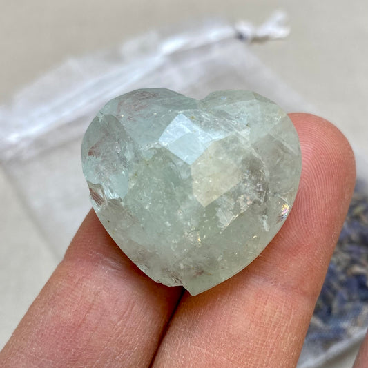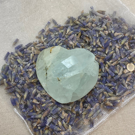 Akvamarin kan renses med lunkent vand og en blød klud, da den er relativt robust. For energirensning kan du placere stenen i måneskin natten over, bruge røgelse som salvie eller palo santo, eller lade den hvile på en selenitplade. Undgå langvarig eksponering for sollys, da det kan få stenens farve til at falme.