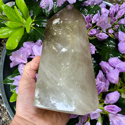 Røgkvarts med Ametyst fantom spids poleret top - 6 cm