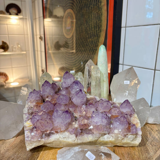 Der er som regel altid flere varianter af ametyst som du kan se og købe i webshoppen eller i krystalbutikken på Valby Tingsted 6 i Valby, København. Ametyst er en af butikkens 180+ forskellige krystaltyper og krystalformer, og der er altid flere end 2.000 unikke krystaller til salg på hylderne her og i butikken i Valby.