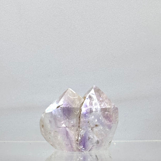 Ja, bjergkrystal kan forveksles med glas eller andre klare mineraler som selenit eller optisk calcit. Dens hårdhed og skarpe, naturlige facetter gør det dog lettere at genkende den. I modsætning til glas har bjergkrystal en højere densitet og bryder lyset på en unik måde, der skaber små regnbueeffekter.