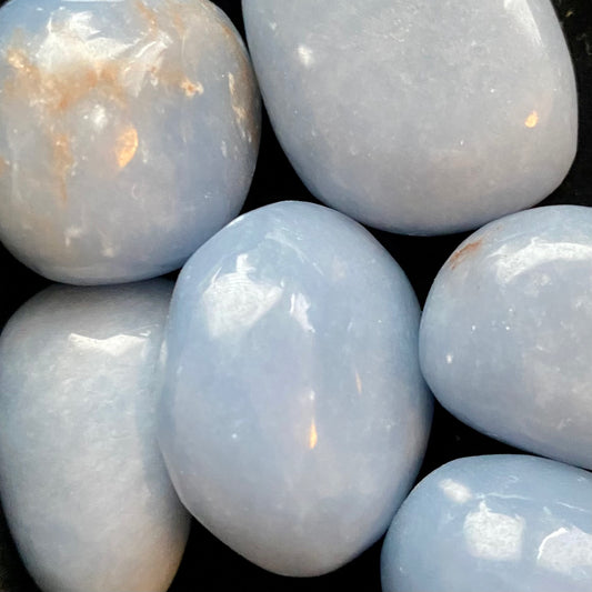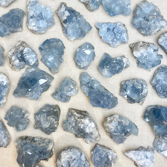 Blå krystaller forbindes med ro, kommunikation og åndelig indsigt. Farven blå symboliserer fred, klarhed og sandhed, hvilket gør disse sten ideelle til at fremme mental ro og styrke evnen til at udtrykke sig klart. De arbejder ofte med halschakraet og det tredje øje, og siges at hjælpe med at åbne sindet for intuition og indre visdom.