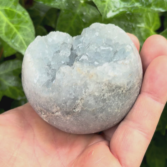 Celestit med sit himmelblå indre assisterer dig sikkert på din rejse så du kan vibrere på de allerhøjeste frekvenser. Svalene dyb ro indtræffer når man er i dens nærvær. Navnet Celestit kommer af Celestial som betyder himmelsk - og det er den.