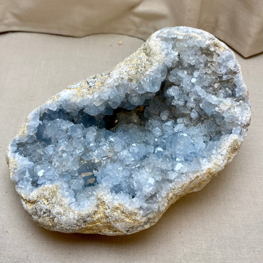 Celestit med sit himmelblå indre assisterer dig sikkert på din rejse så du kan vibrere på de allerhøjeste frekvenser. Svalene dyb ro indtræffer når man er i dens nærvær. Navnet Celestit kommer af Celestial som betyder himmelsk - og det er den.