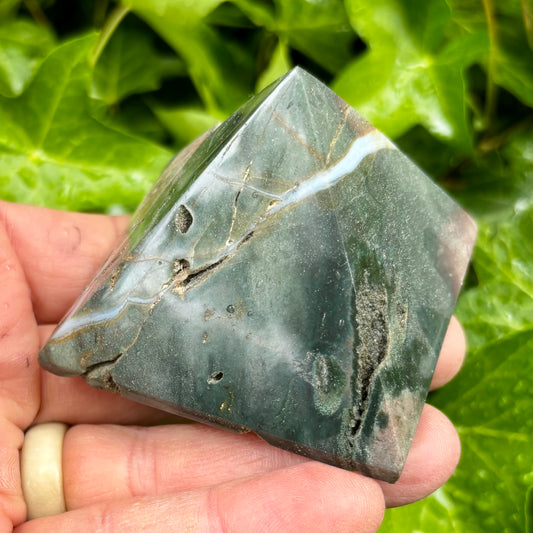 Ocean Jaspis pyramide 7,5 x 5,5 cm | med krystalgrotte