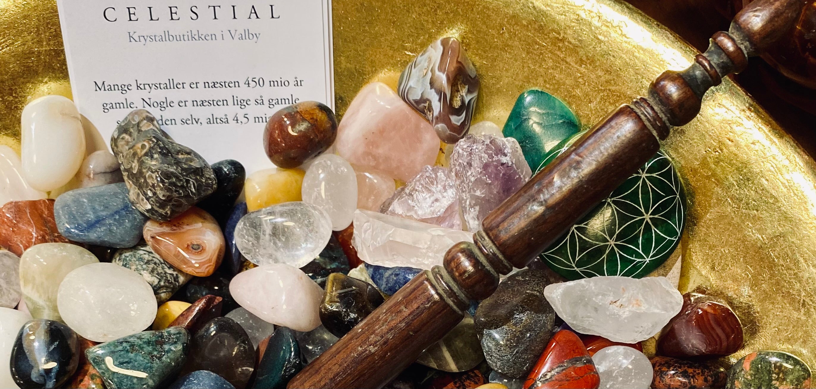 Der er flere end 250 slags og varianter af lommesten og krystaller 300+ som du kan se og købe i webshoppen eller i krystalbutikken på Valby Tingsted 6 i Valby, København. Der er altid flere end 2.000 unikke krystaller til salg på hylderne i webshoppen og i butikken i Valby.