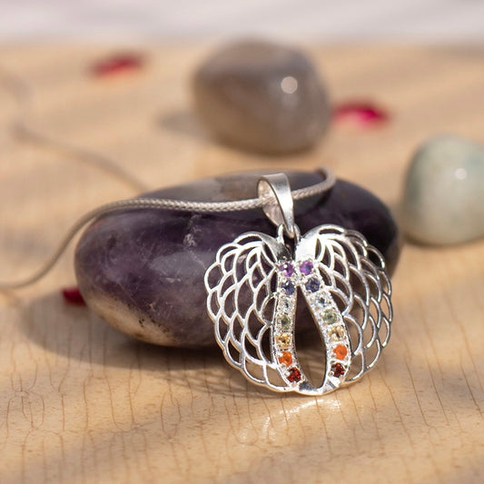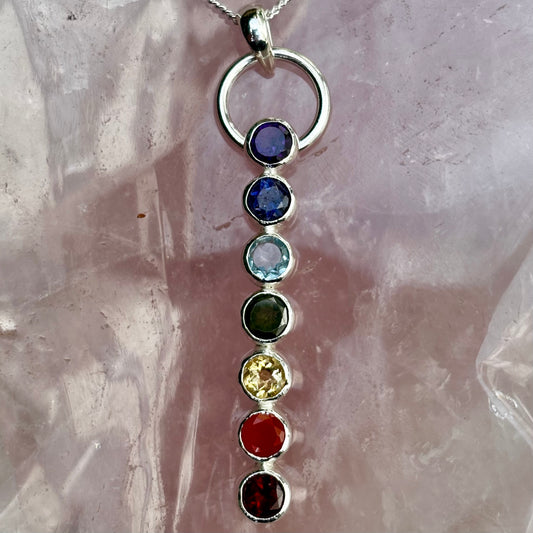 Chakra stav vedhæng | 925 Sterling Sølv, 7 krystaller