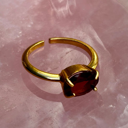 Granat fingerring | Guldbelagt 925 Sterling Sølv, facetslebet garnet