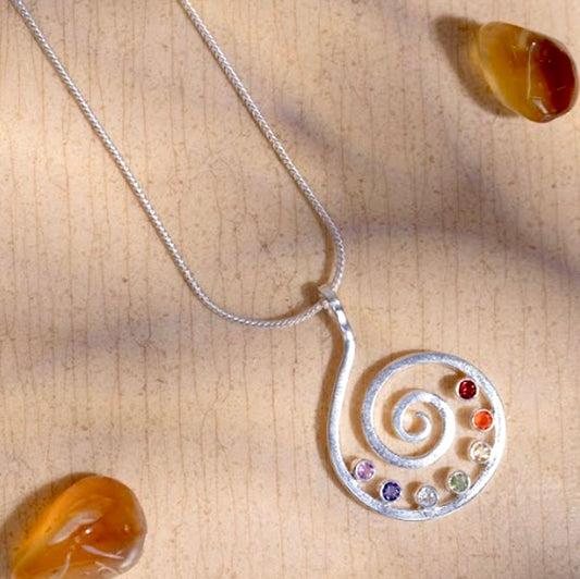 Kundalini spiral vedhæng | 925 Sterling Sølv, 7 krystaller