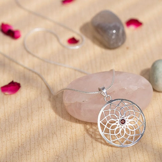 Rod Chakra vedhæng | 925 Sterling Sølv og granat