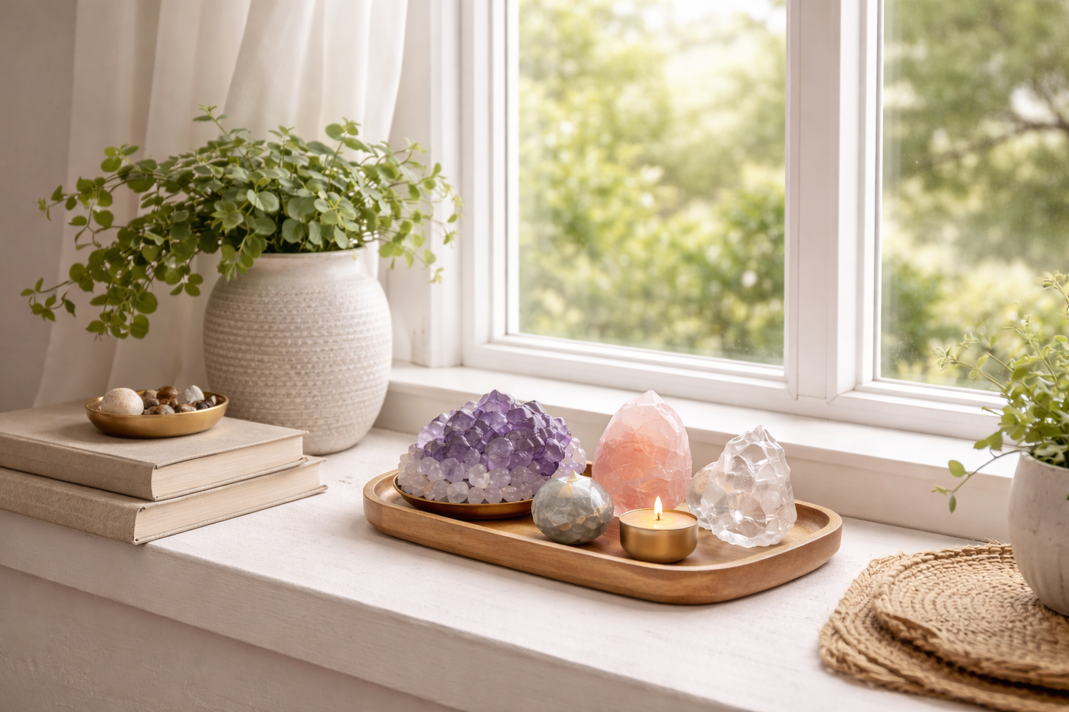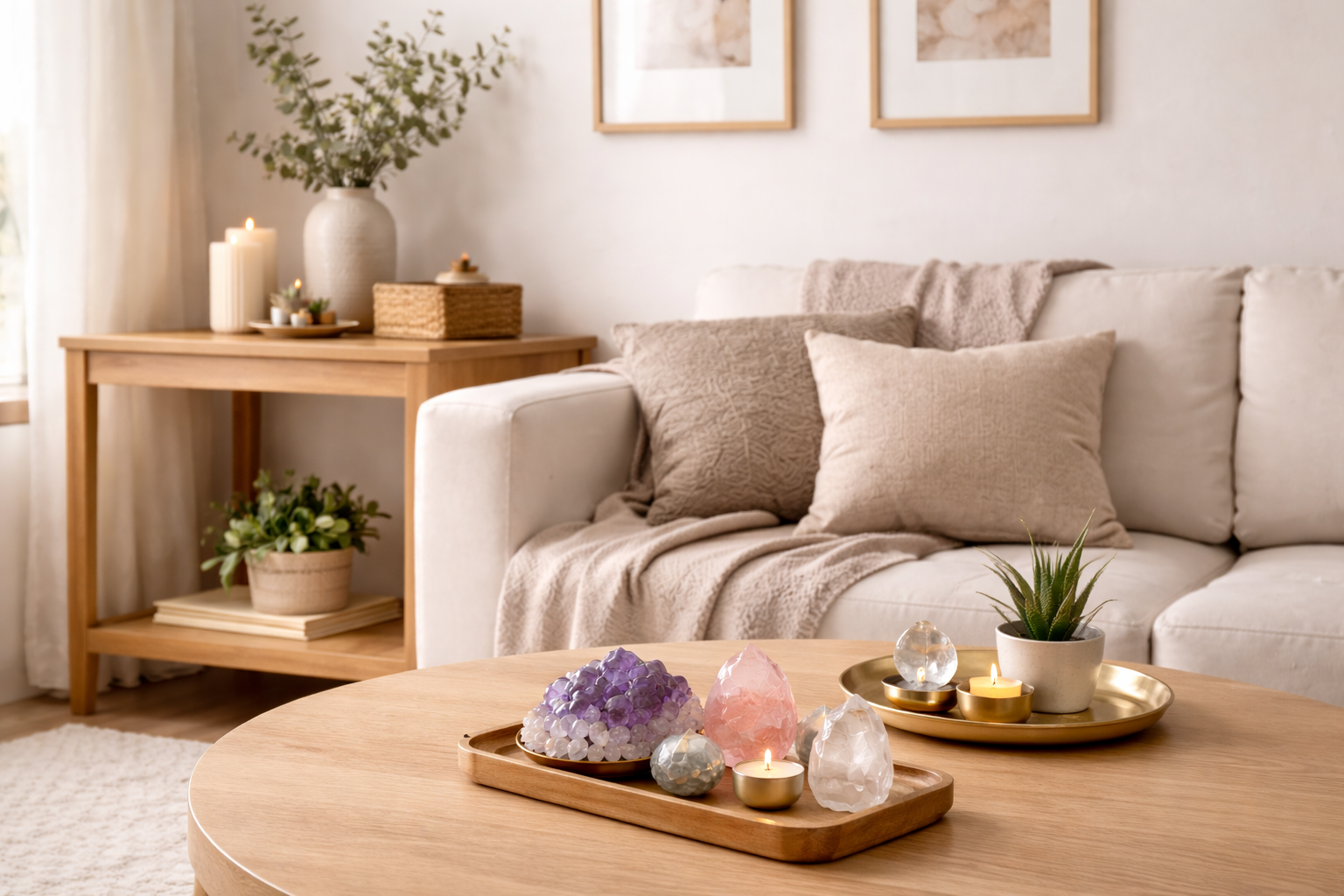 Krystaller behøver ikke dominere et rum for at gøre en forskel. De kan indgå stille og naturligt i indretningen – på en bogreol, i en entré, ved skrivebordet eller som en del af et roligt læsehjørne. Sammen med træ, sten, hør, messing og andre naturmaterialer tilfører de tyngde, tekstur og karakter. Her finder du inspiration til, hvordan krystaller kan integreres æstetisk og underspillet i hjemmet, så de bliver en del af helheden fremfor et centrum.
