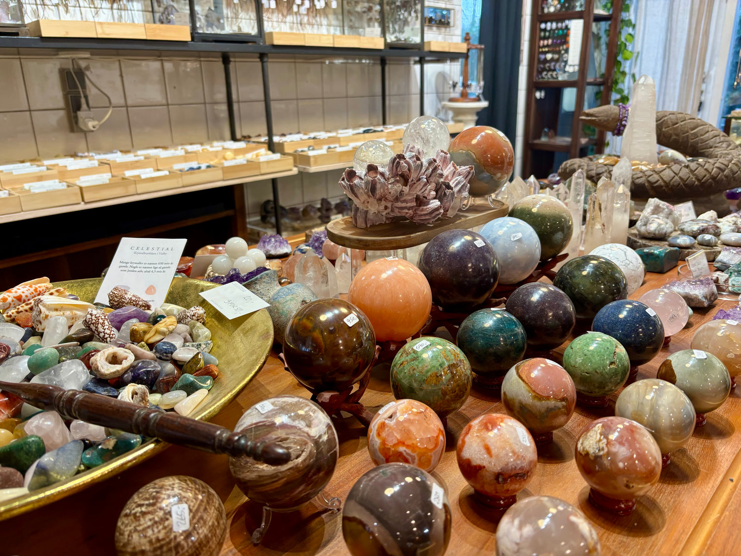 Celestial Nature er en unik krystalbutik i Valby, København med en hyggelig facon der vækker sanser og ens nysgerrighed. Der er flere tusinde krystaller i butikkens to lokaler, så sæt tid af til at opleve. Man kan sige at der er en fremtidens butik, da den inviterer til rigtige møder mellem mennesker som udveksler rigtige historier og gode erfaring om krystaller og livet.