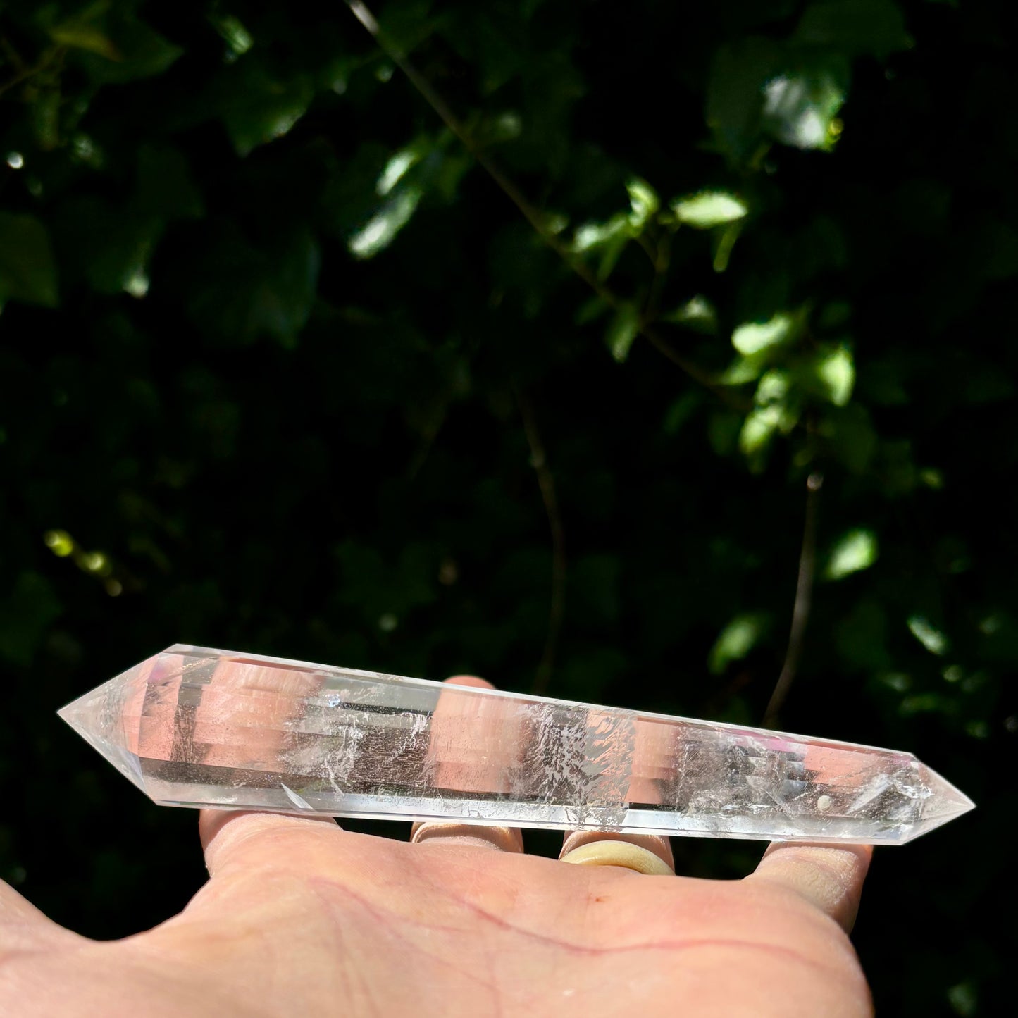 Dette er vist en af de smukkeste og regeltro polerede dobbelt terminerede Vogel bjergkrystal med 12 facetter jeg har set længe.