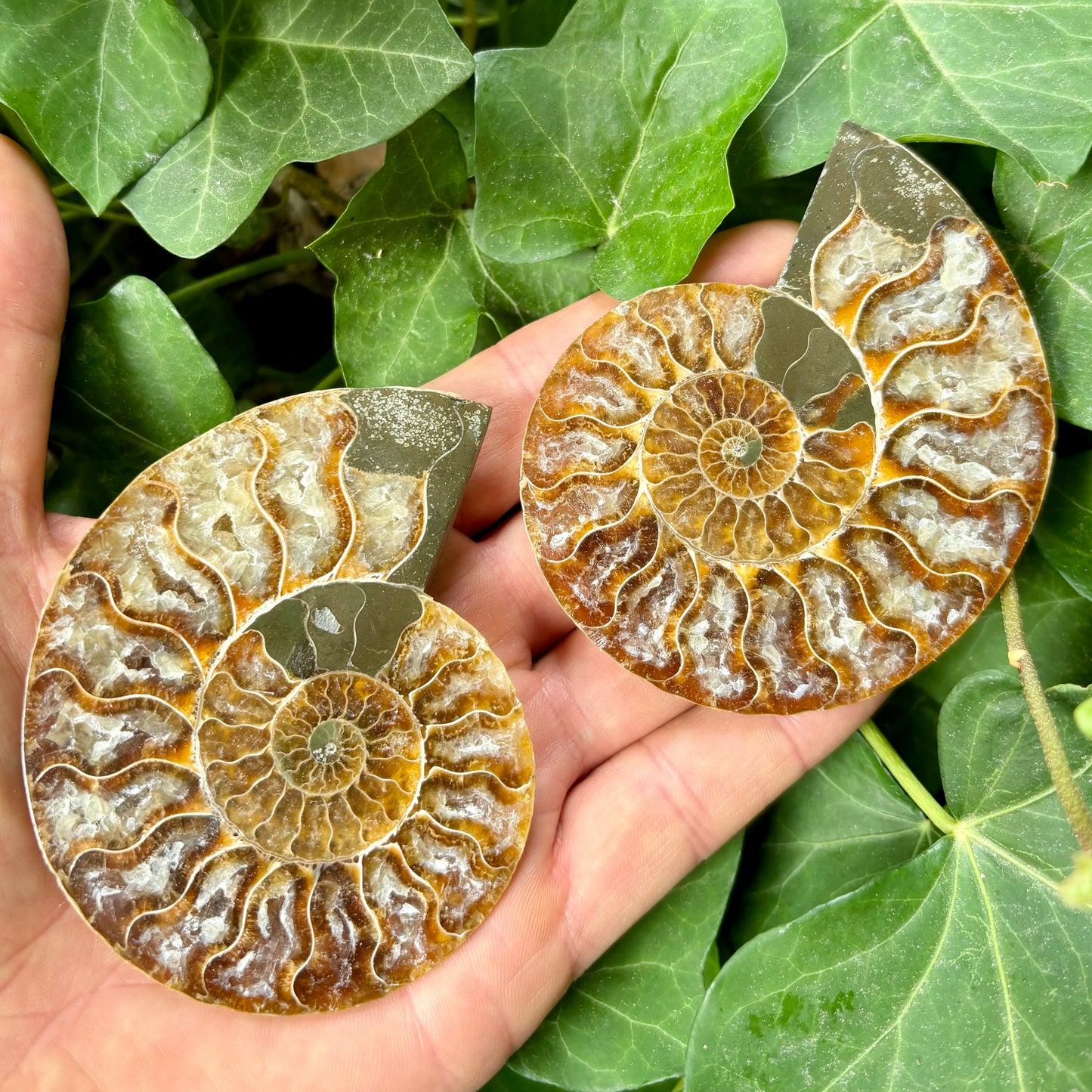 Du får her 1 par af en gennemskåret ammonit.
