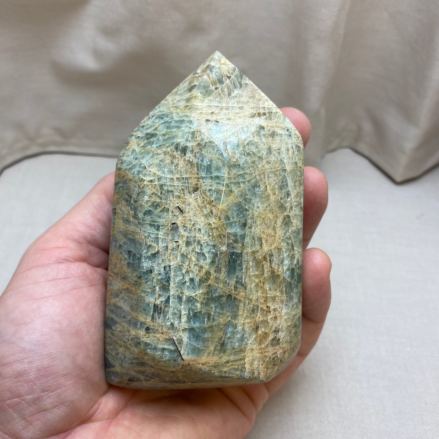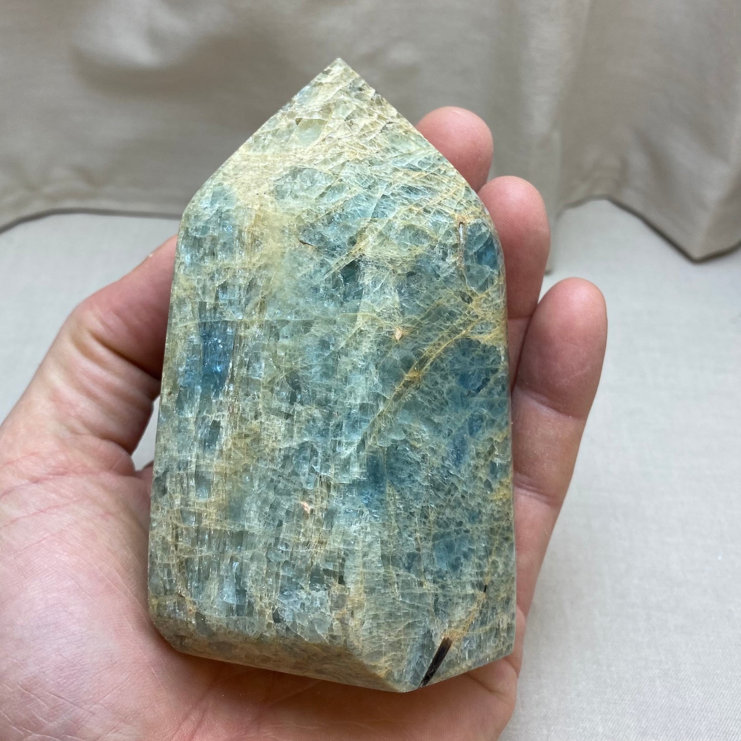 Køb akvamarin spids 11 cm i den lille krystalbutik i Valby