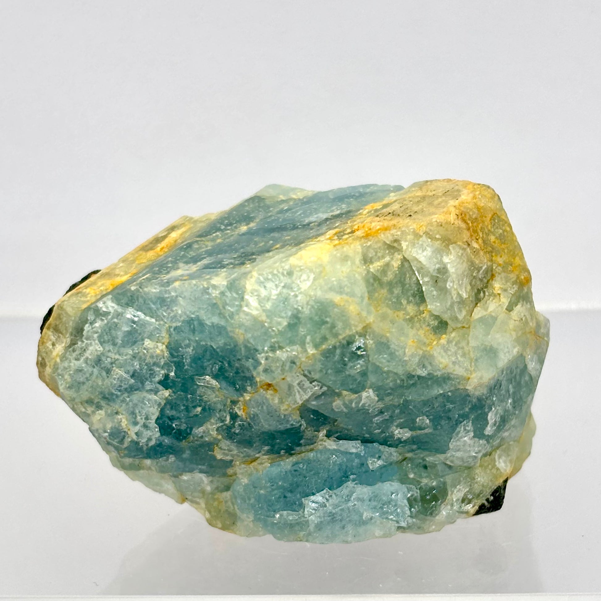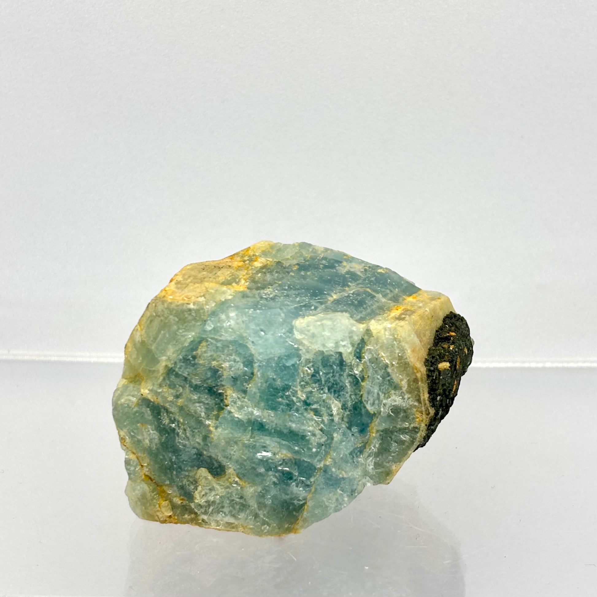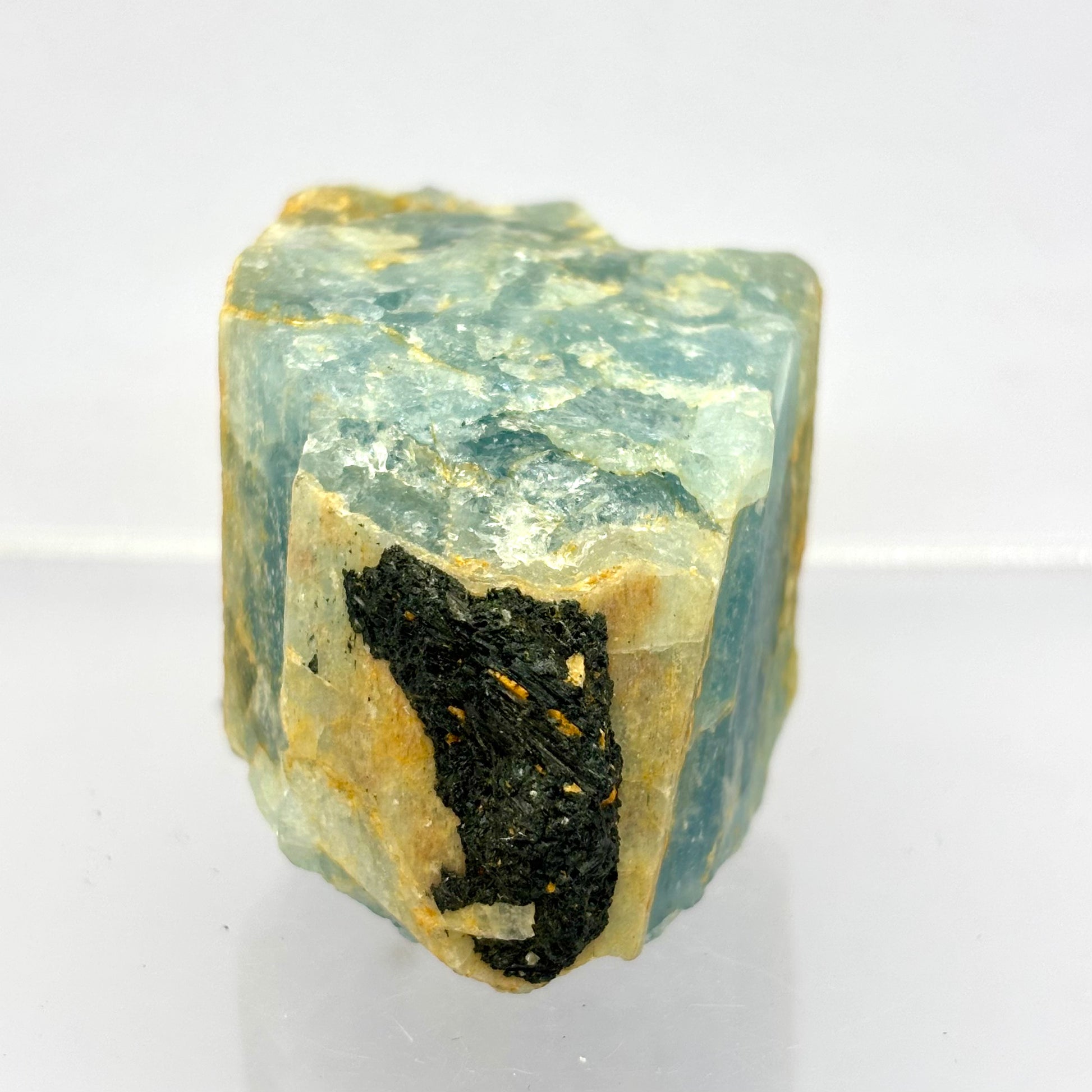 Her ser du et rigtig flot stykke klar blå akvamarin i matrix med sort Turmalin