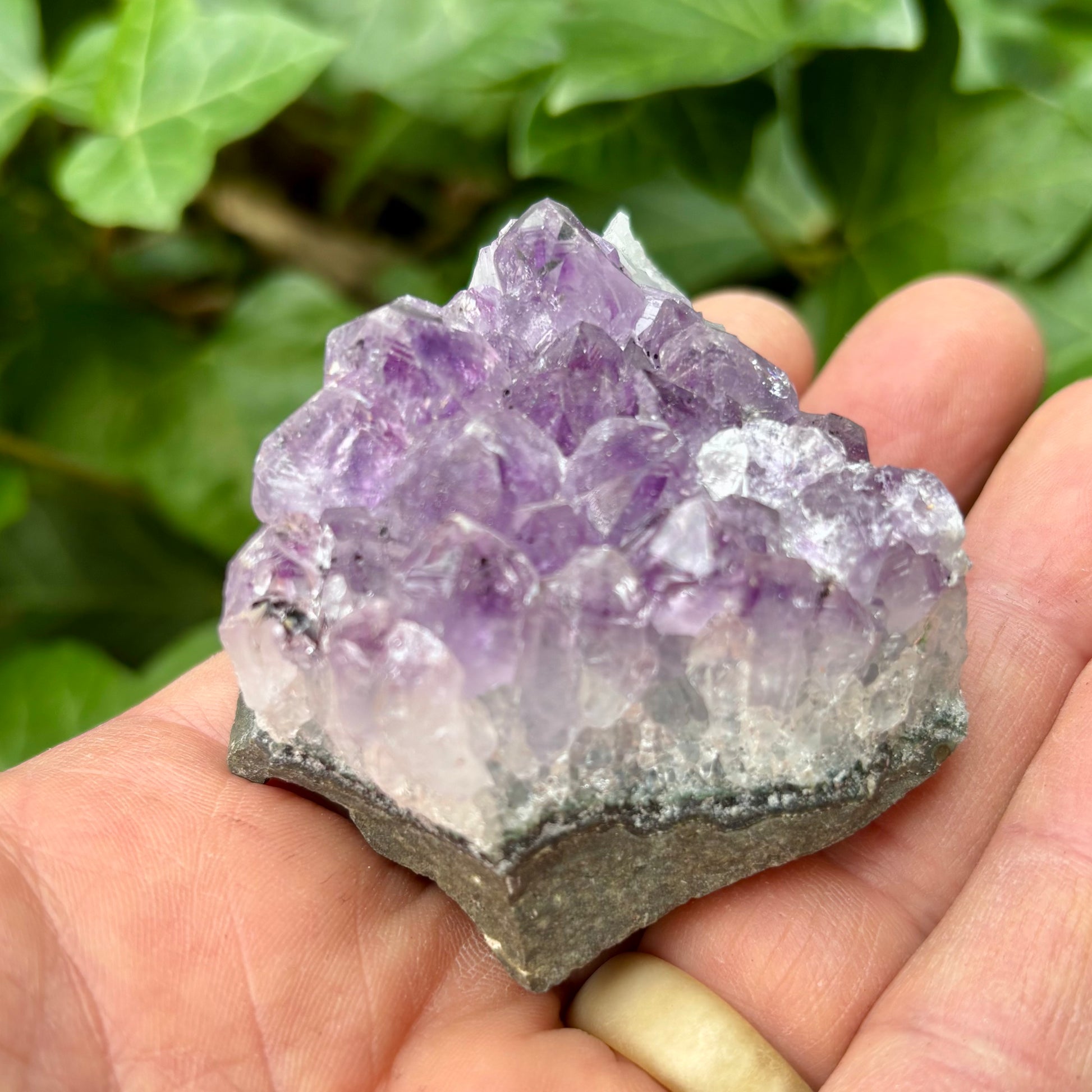 Brasilianske ametystklynger er kendt for deres store, åbne formationer og bløde, violette farver, som ofte spiller i nuancer fra lys lavendel til dyb lilla. Krystallerne er typisk klarere og mere gennemsigtige, og overfladen fremstår venlig og lysende. De udsender en rolig og opløftende energi, som indbyder til harmoni og indre balance — perfekte i rum, hvor man ønsker lethed og flow