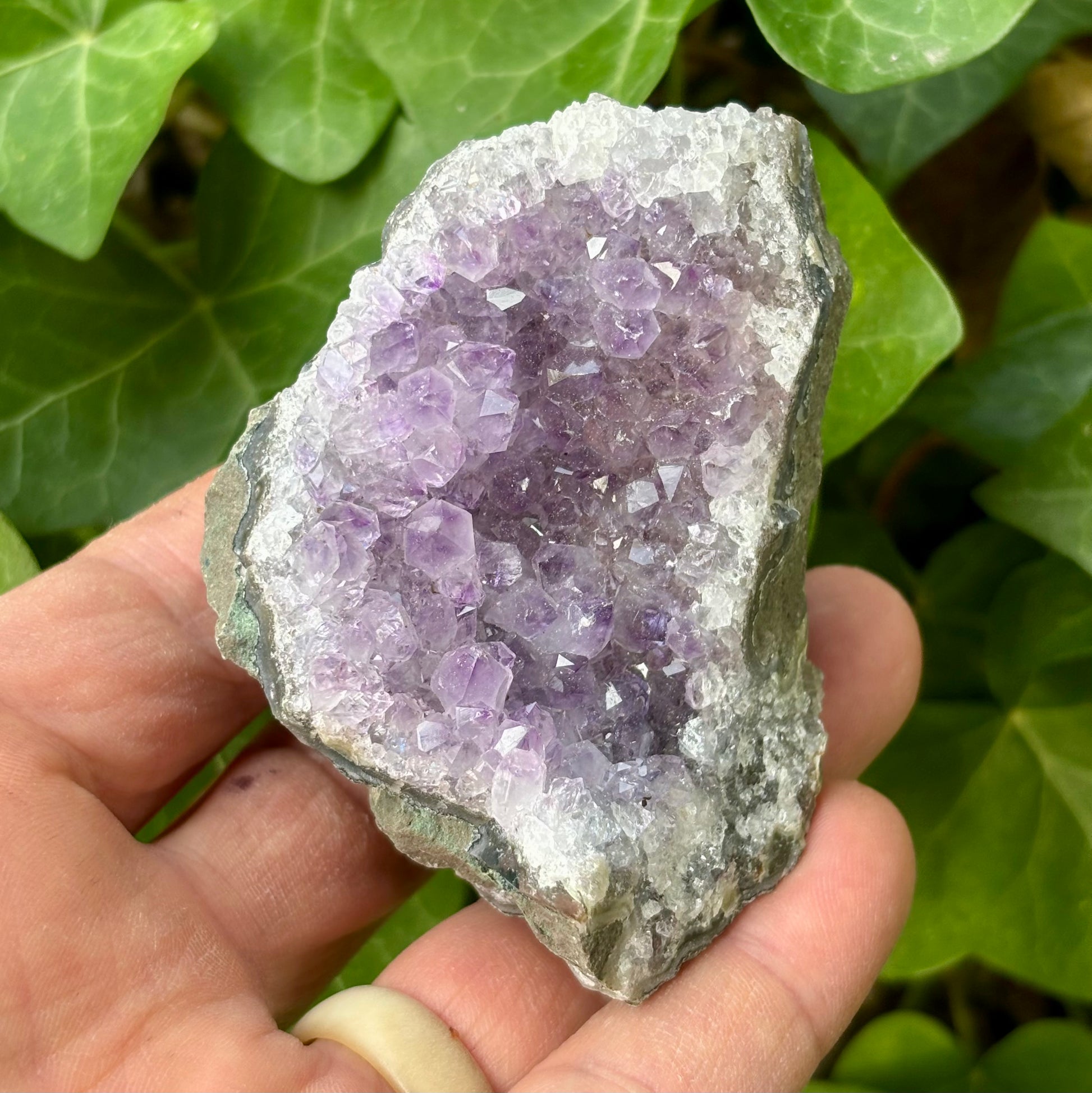 Brasilianske ametystklynger er kendt for deres store, åbne formationer og bløde, violette farver, som ofte spiller i nuancer fra lys lavendel til dyb lilla. Krystallerne er typisk klarere og mere gennemsigtige, og overfladen fremstår venlig og lysende. De udsender en rolig og opløftende energi, som indbyder til harmoni og indre balance — perfekte i rum, hvor man ønsker lethed og flow