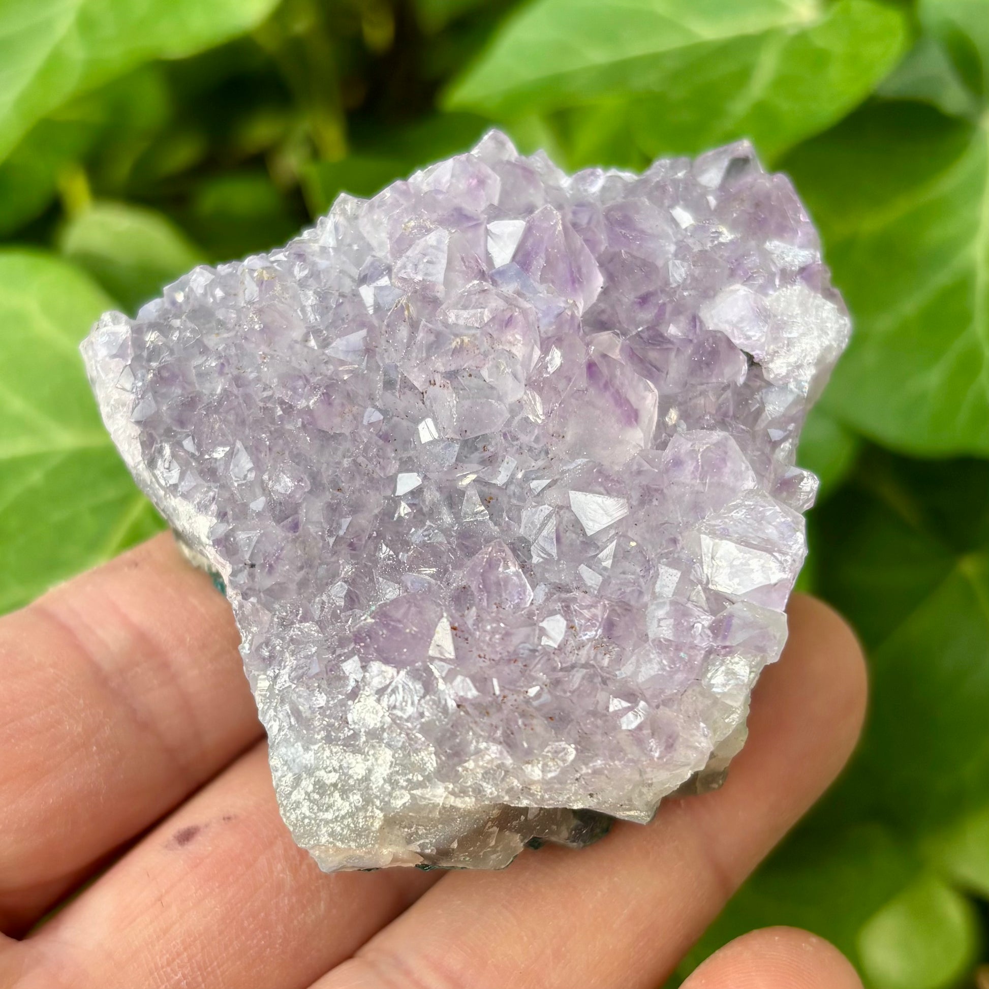 Brasilianske ametystklynger er kendt for deres store, åbne formationer og bløde, violette farver, som ofte spiller i nuancer fra lys lavendel til dyb lilla. Krystallerne er typisk klarere og mere gennemsigtige, og overfladen fremstår venlig og lysende. De udsender en rolig og opløftende energi, som indbyder til harmoni og indre balance — perfekte i rum, hvor man ønsker lethed og flow