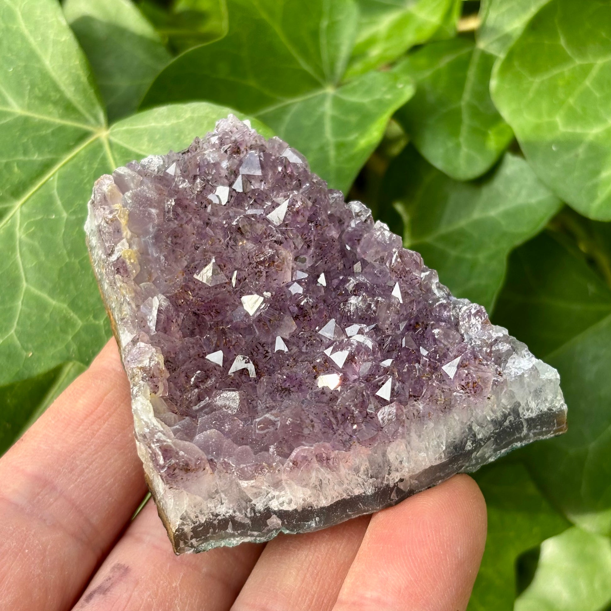 Ametyst fra Uruguay er berømt for sin intense, mørke lilla tone med en næsten fløjlsagtig dybde. Krystallerne er ofte tætstillede og små, hvilket giver klyngerne en særlig glans og tyngde. De har en mere koncentreret og beskyttende energi, som skaber ro, fokus og en følelse af indre styrke. Mange oplever dem som mere “mystiske” og jordforbindende end de brasilianske.