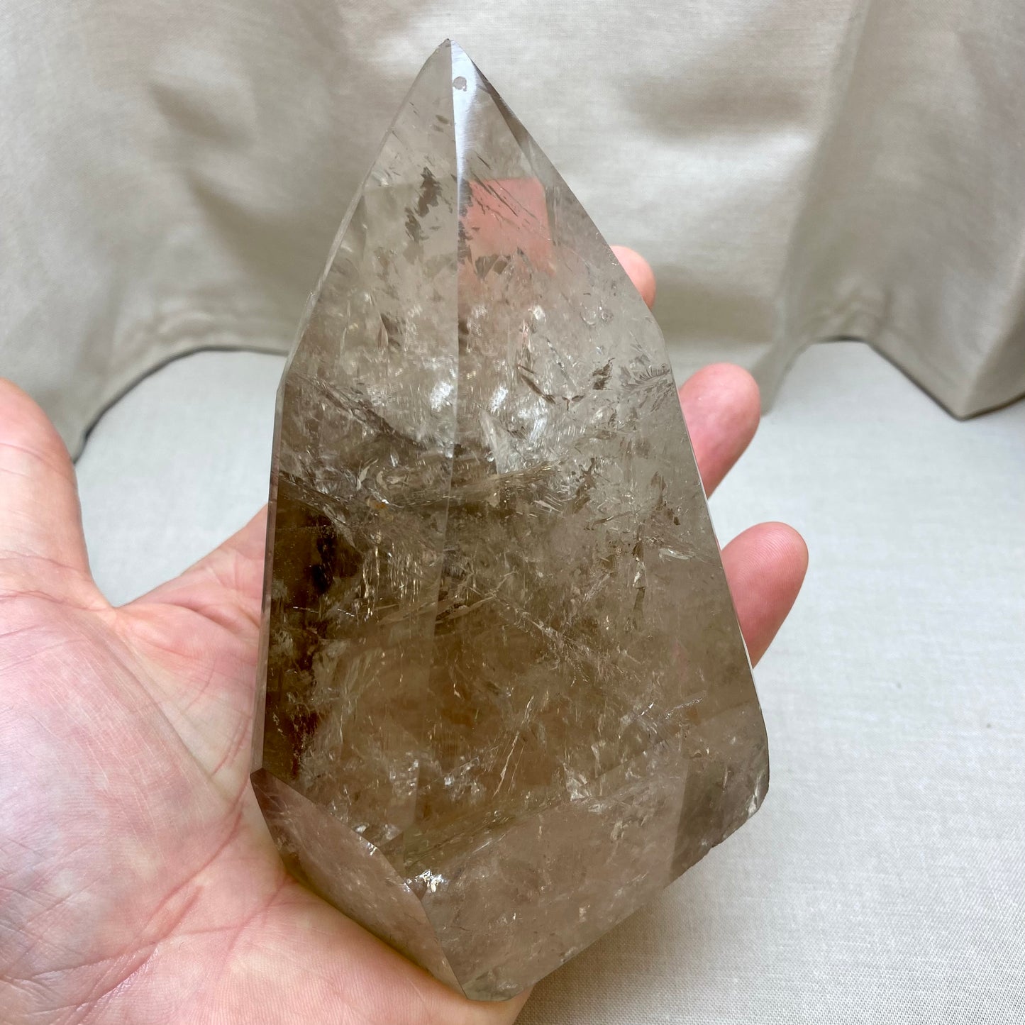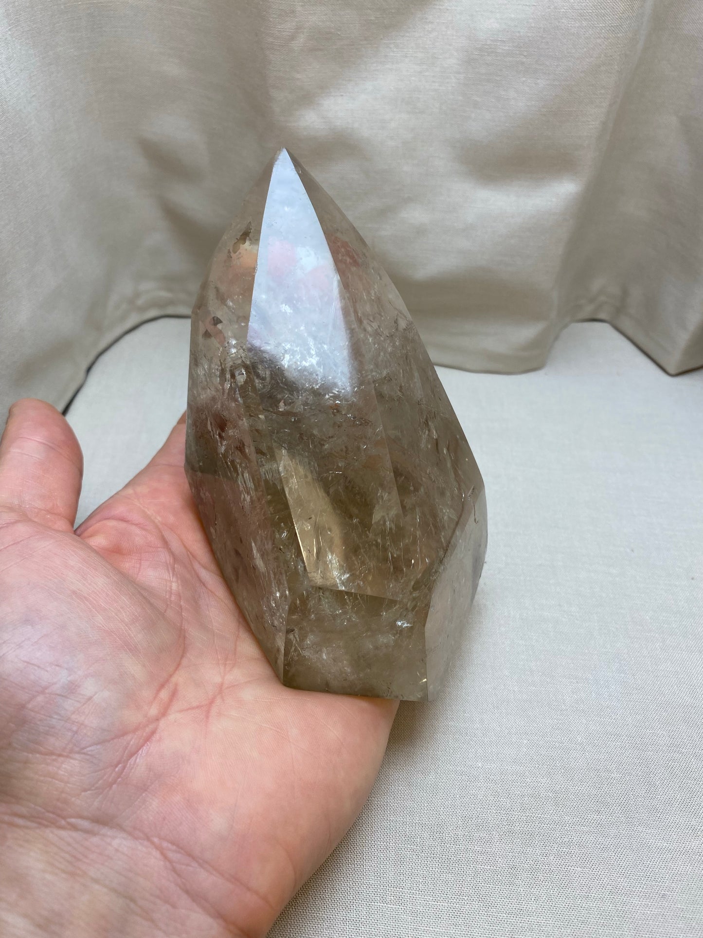 Køb bjergkrystal/ røgkvarts spids 10 cm i den lille krystalbutik i Valby