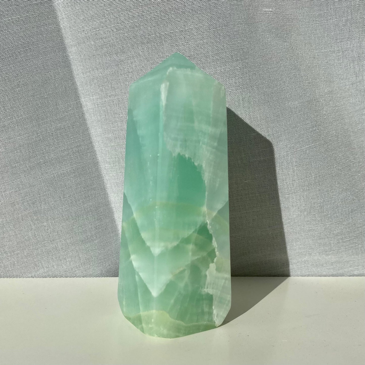 Køb caribisk calcit obelisk - 11,5 cm i den lille krystalbutik i Valby