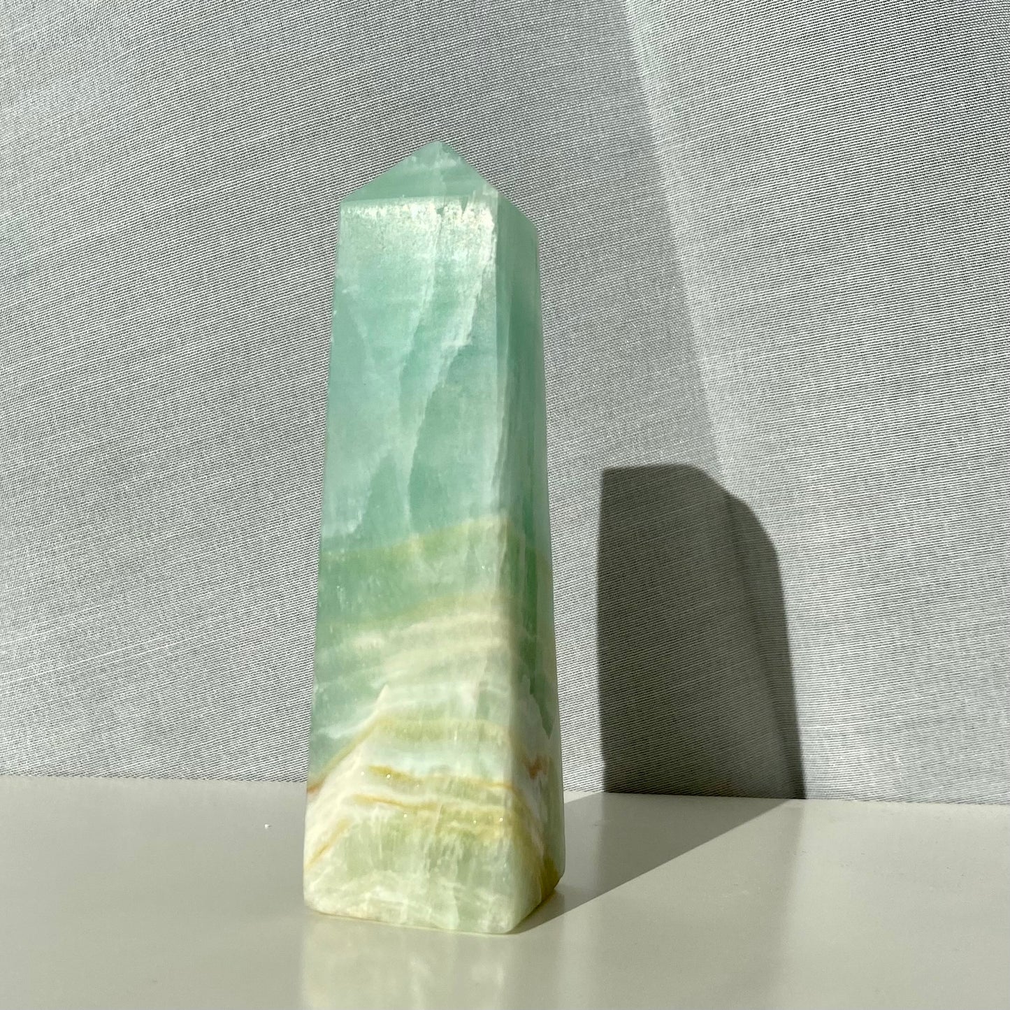 Køb caribisk calcit obelisk - 12 cm i den lille krystalbutik i Valby
