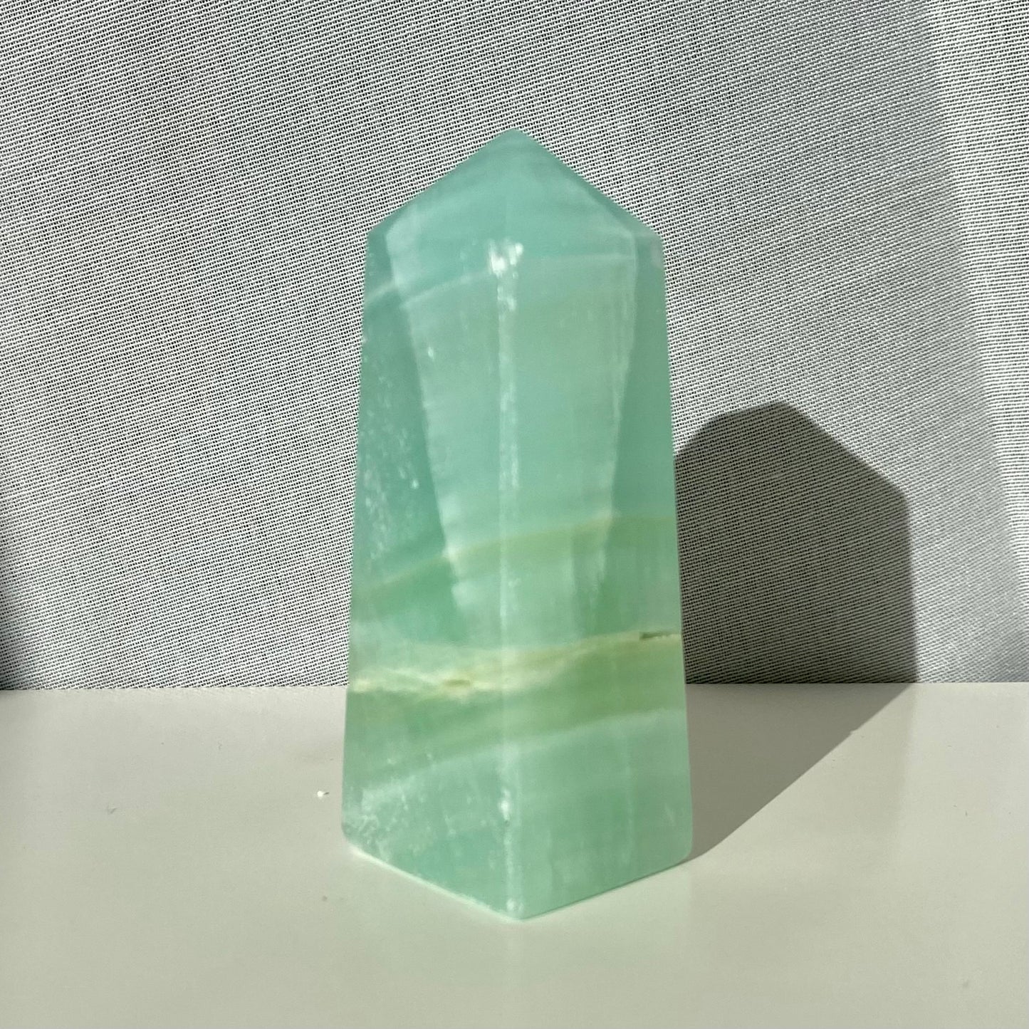 Køb caribisk calcit obelisk - 8 cm i den lille krystalbutik i Valby
