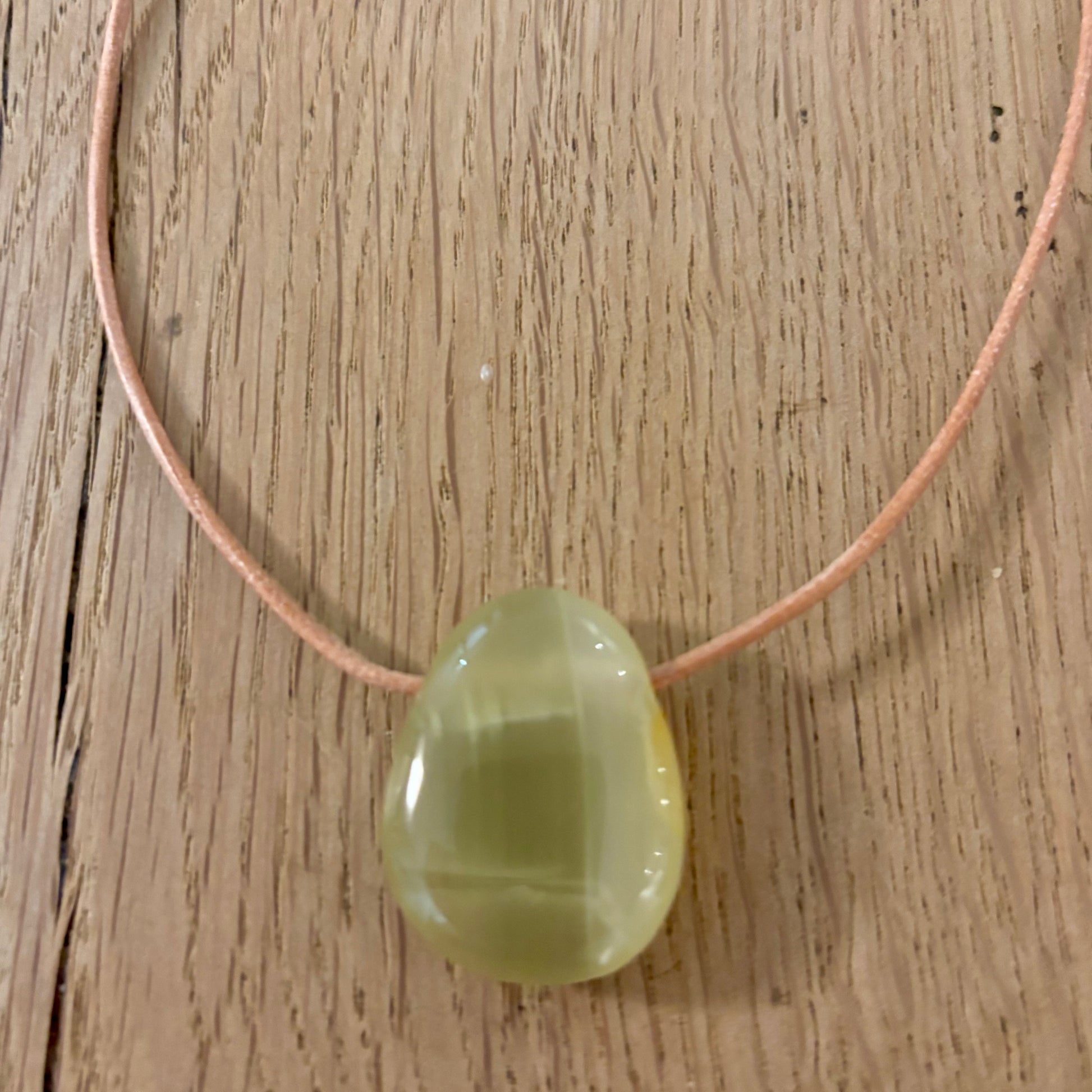 Her er en læderhalskæde med et gult Onyx vedhæng.