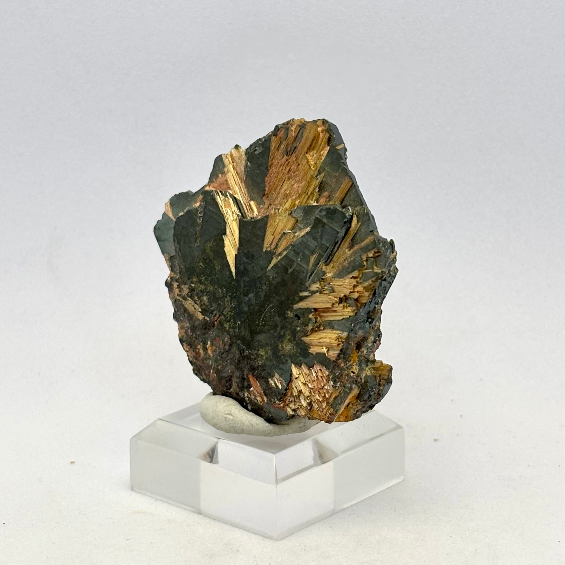 Beskrivelse af Gylden rutil på hæmatit 5 cm