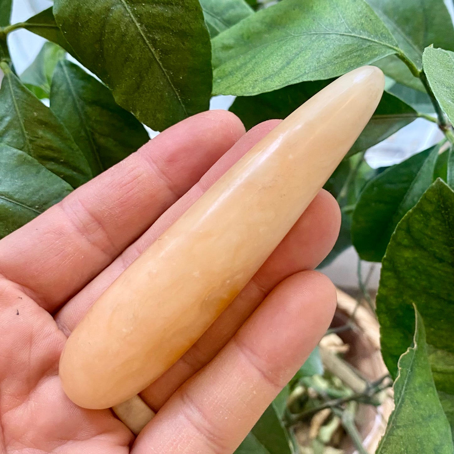 Køb healerstav orange calcit - 11 cm i den lille krystalbutik i Valby