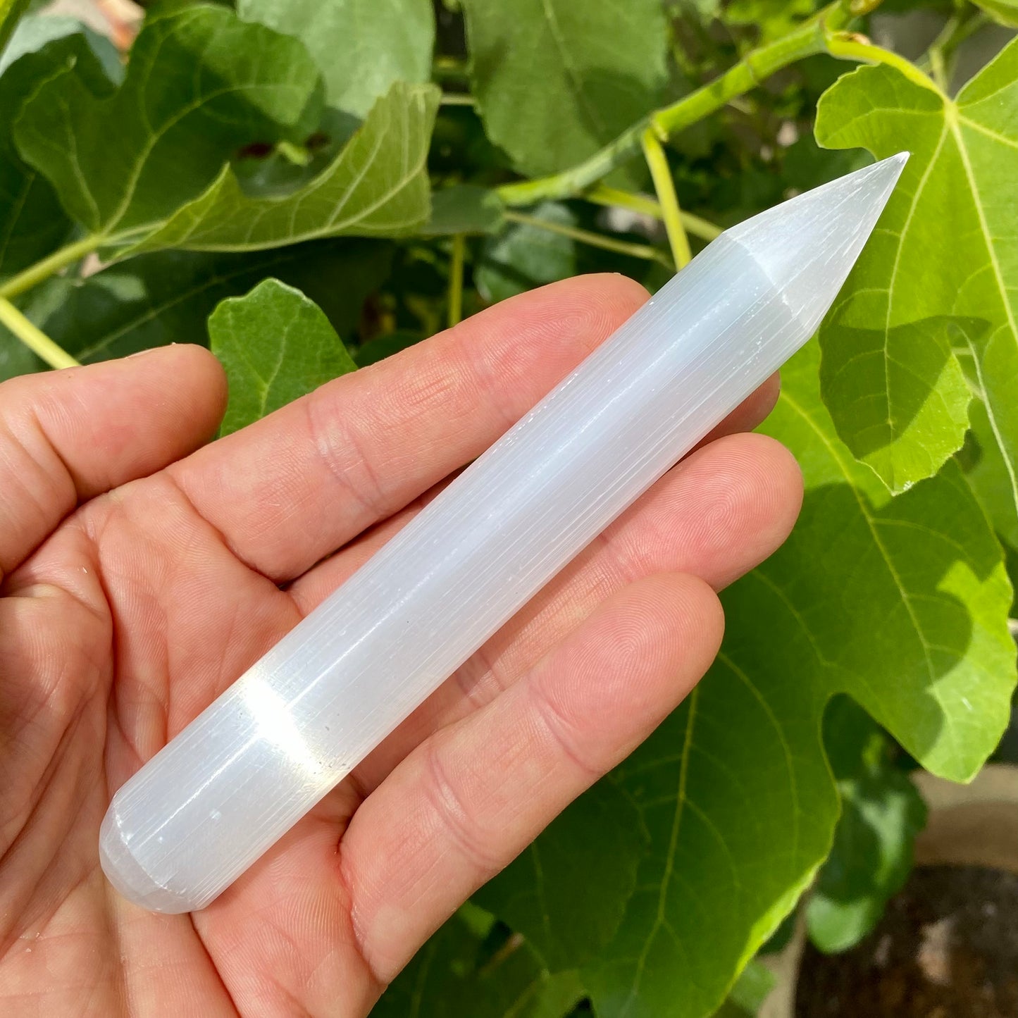 Køb healerstav - selenit spids i den lille krystalbutik i Valby