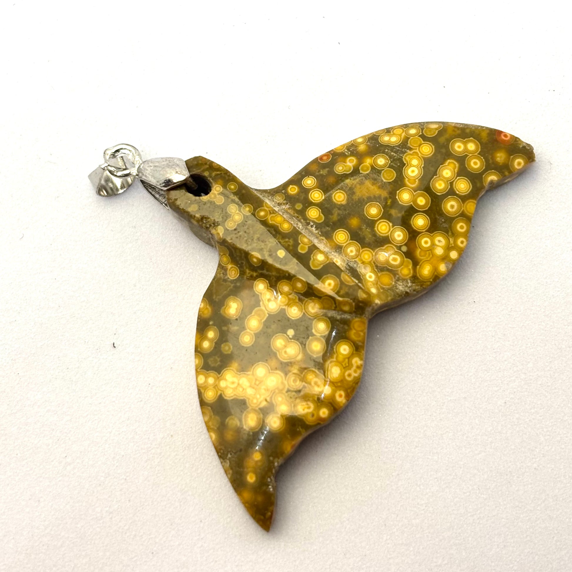 Meget sødt lille hval hale vedhæng af orbicular Ocean jaspis.