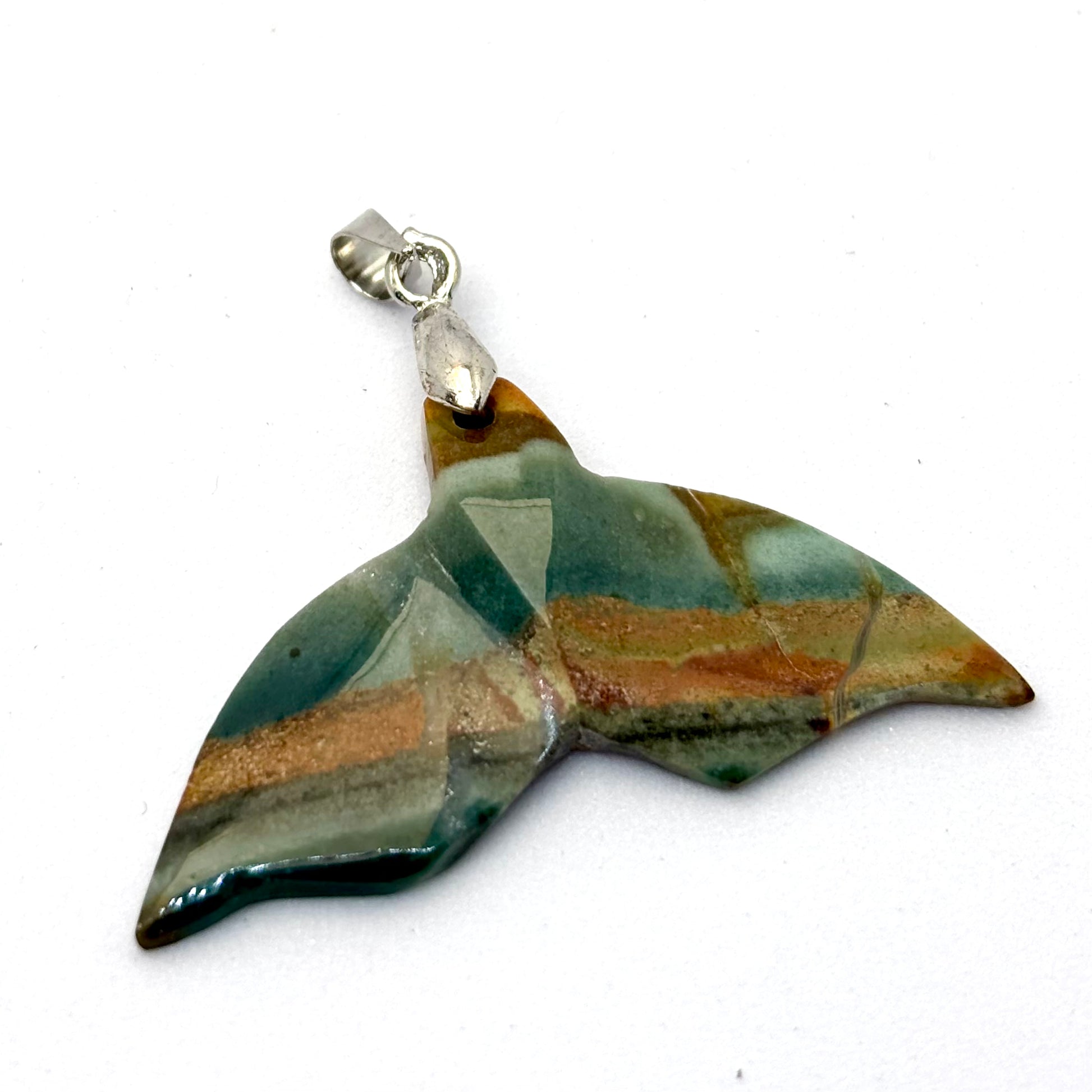 Meget sødt lille hval hale vedhæng af polykrom jaspis.
