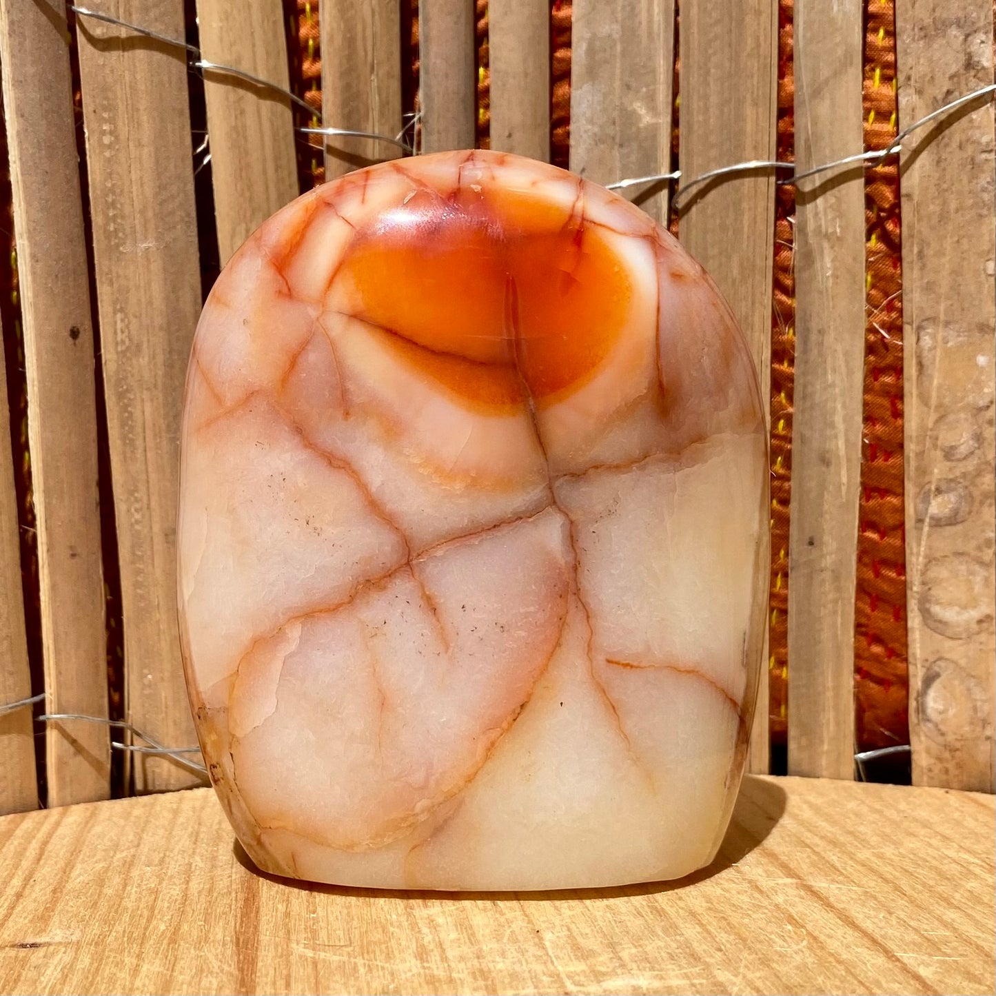 Her er en smuk karneol freeform skulptur poleret efter alle kunstens regler. Stenen er fra Mali.