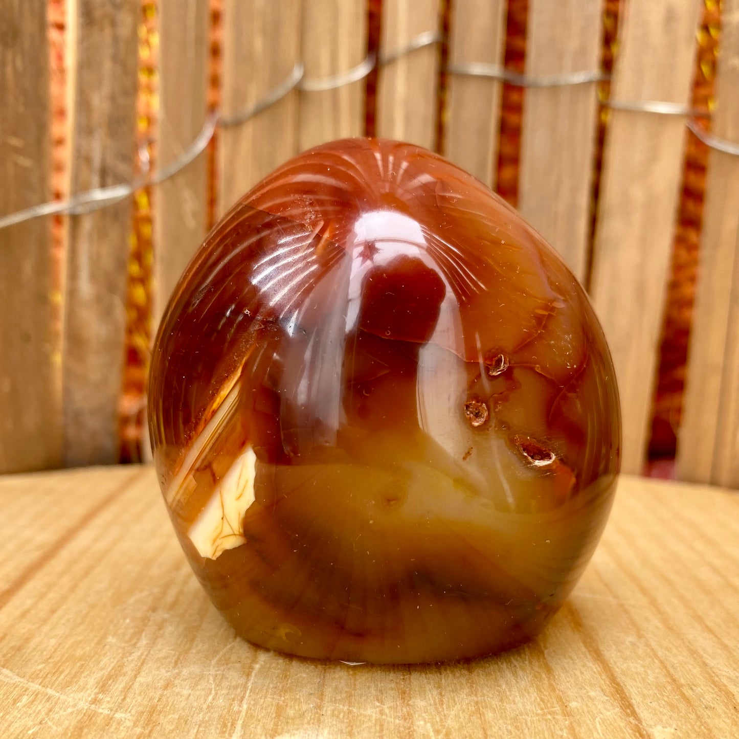 Her er en smuk karneol freeform skulptur poleret efter alle kunstens regler. Stenen er fra Madagaskar.