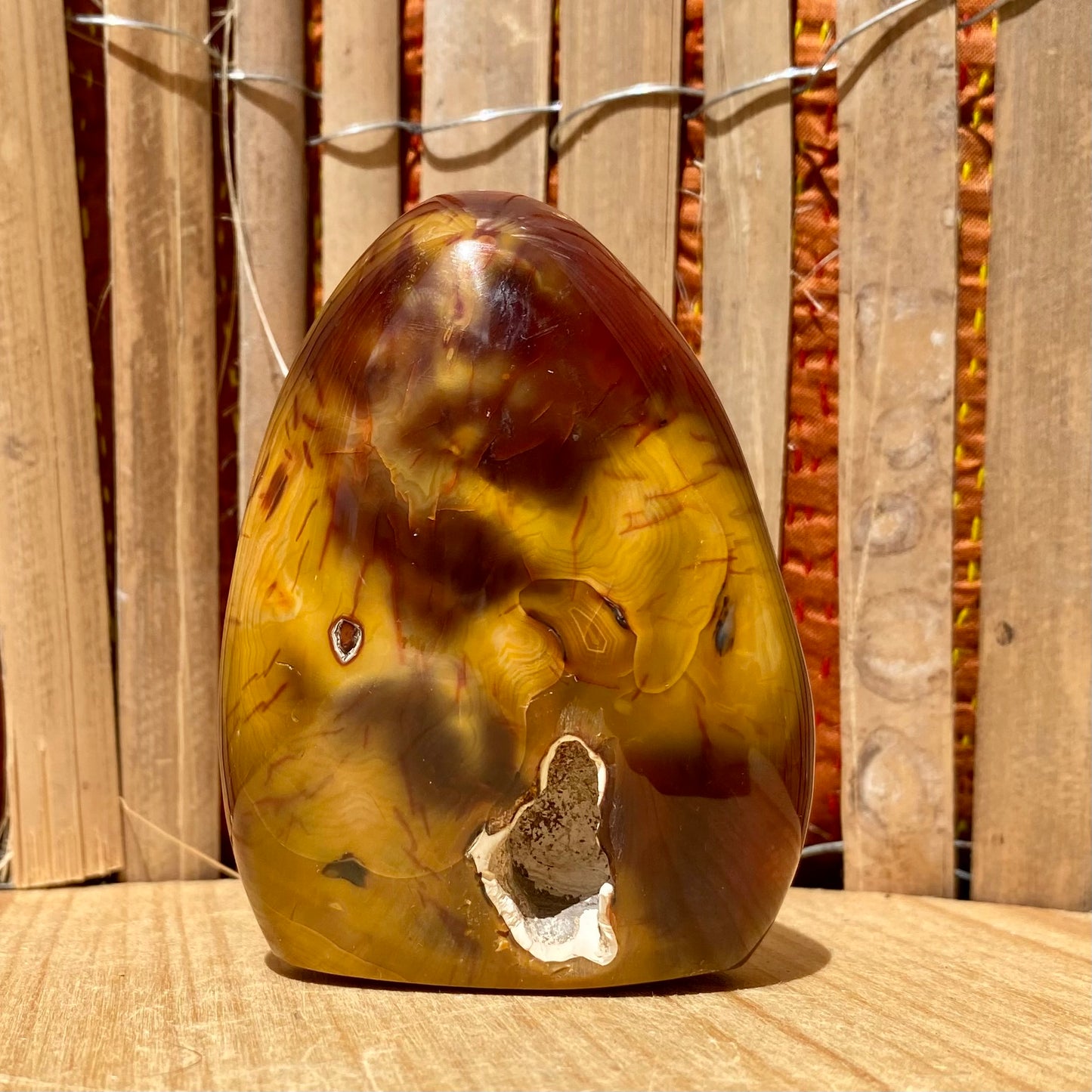Her er en smuk karneol freeform skulptur poleret efter alle kunstens regler. Stenen er fra Mali.