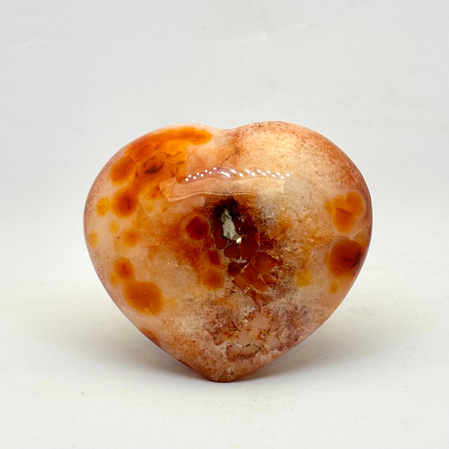 Køb karneol hjerte - 6,5 cm i den lille krystalbutik i Valby