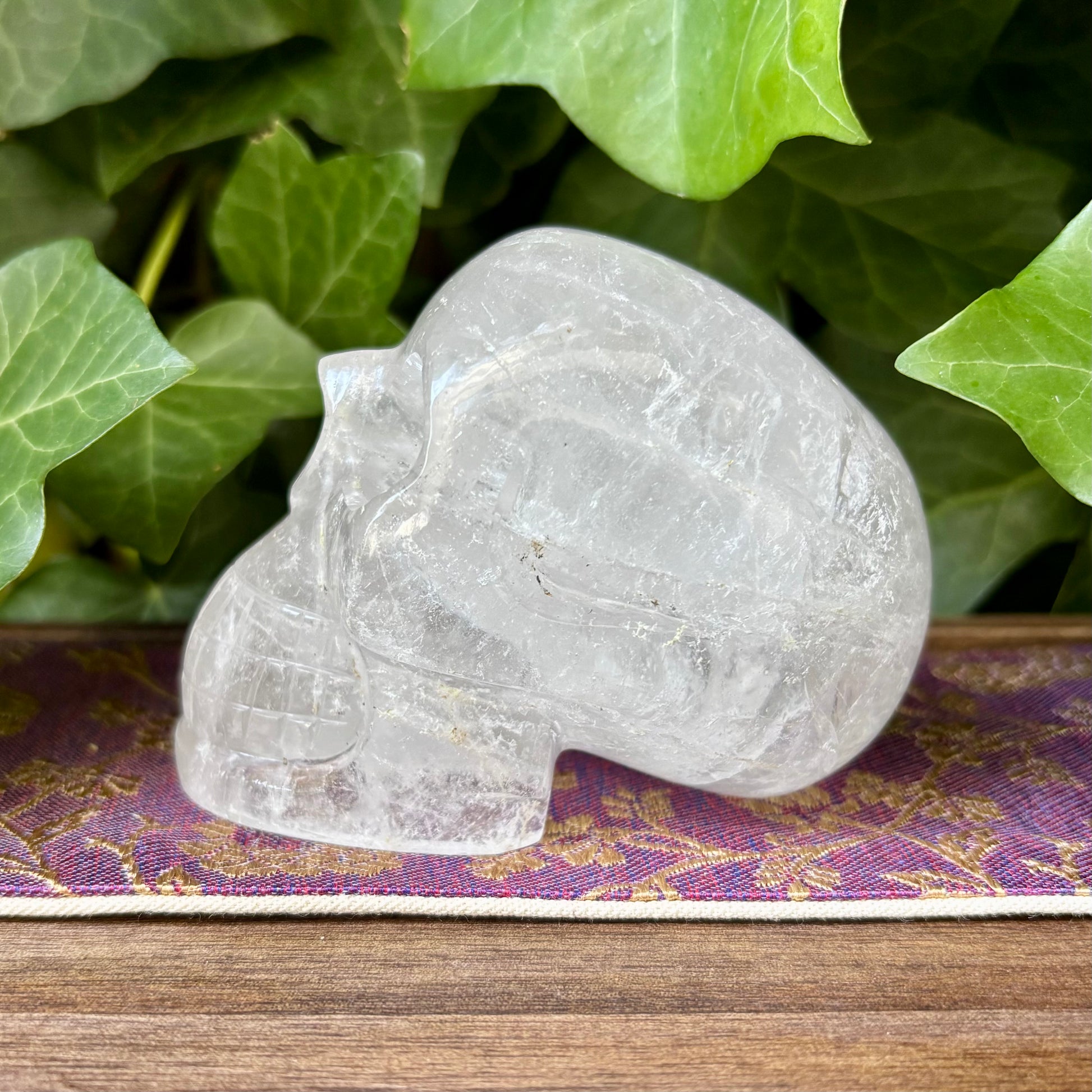 Når kraniet er udskåret i Himalaya bjergkrystal, bærer det en særlig ren og høj vibration. Krystallen fra de hellige bjerge anses for at åbne bevidstheden, rense sindet og styrke forbindelsen til universel viden. I denne form bliver kraniet et lysende spejl for meditation, indsigter og indre rejser – et symbol på, at sindets dybeste mørke kan gennemstrømmes af klarhed.