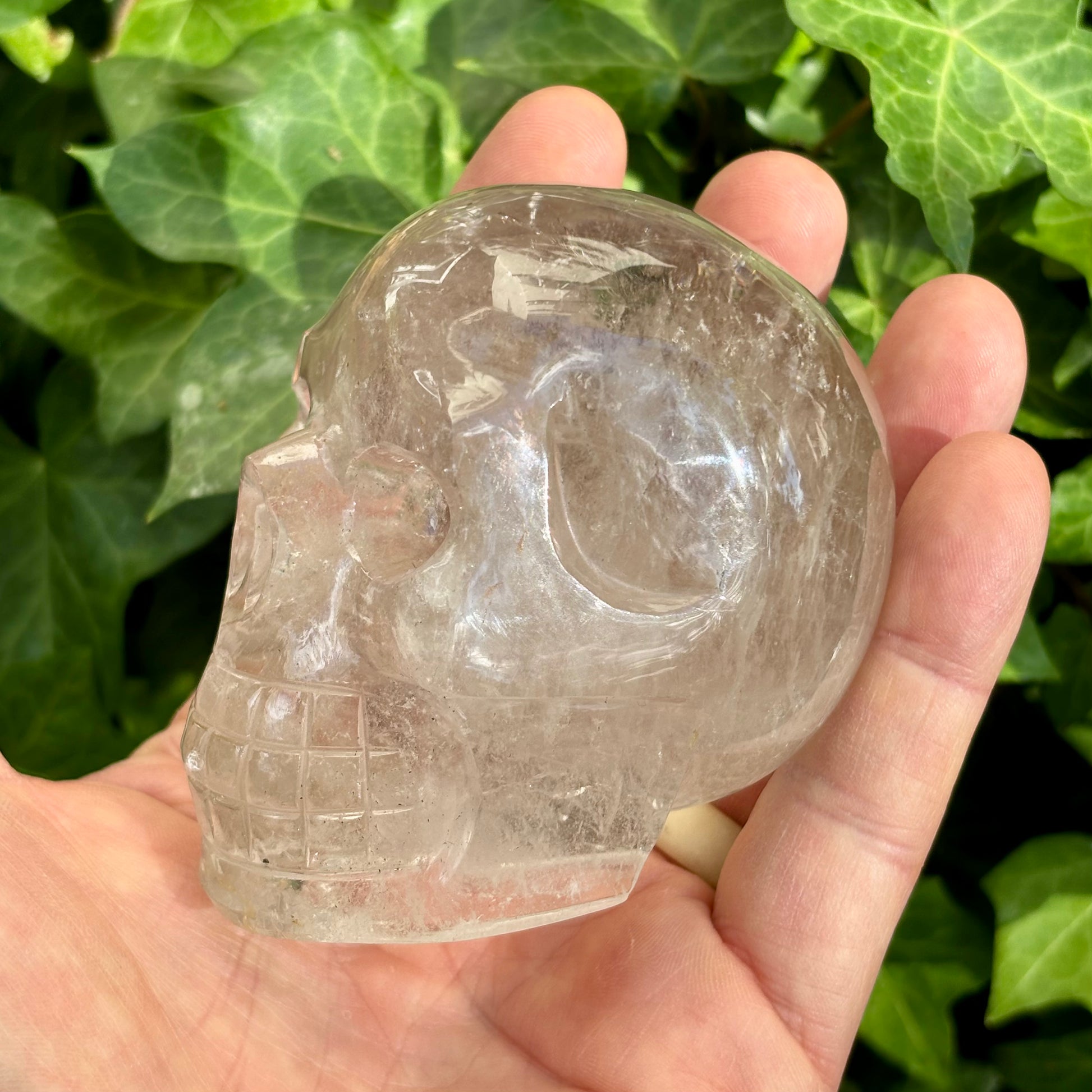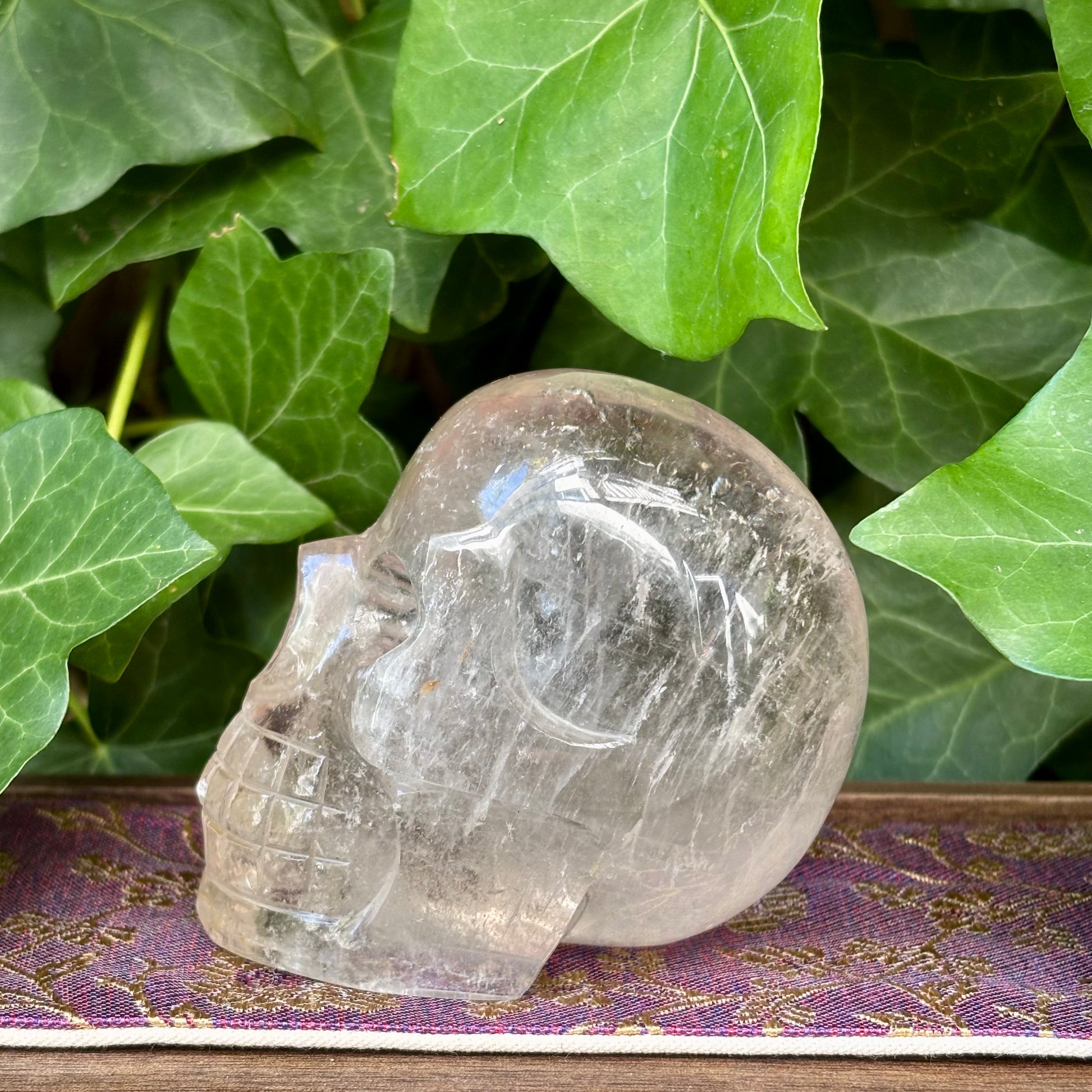 Når kraniet er udskåret i Himalaya bjergkrystal, bærer det en særlig ren og høj vibration. Krystallen fra de hellige bjerge anses for at åbne bevidstheden, rense sindet og styrke forbindelsen til universel viden. I denne form bliver kraniet et lysende spejl for meditation, indsigter og indre rejser – et symbol på, at sindets dybeste mørke kan gennemstrømmes af klarhed.