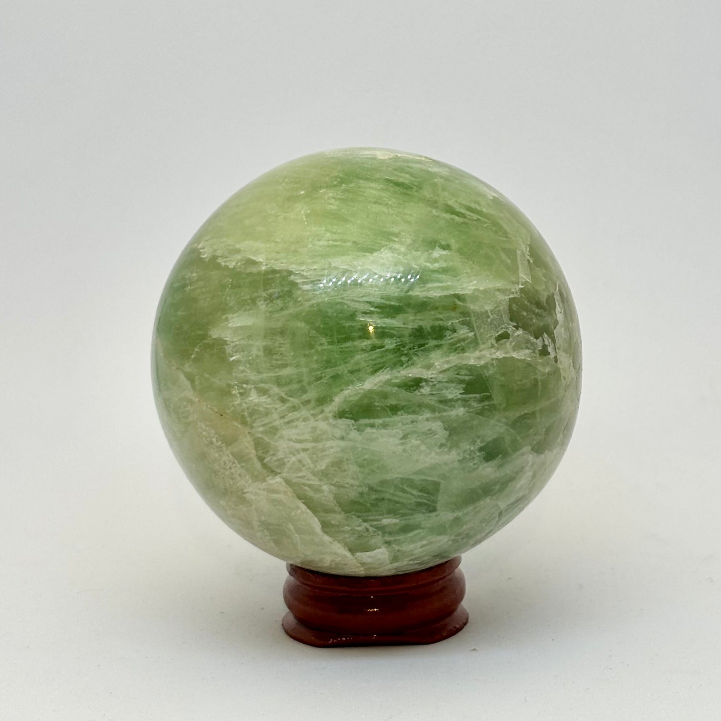 Her er en rigtig flot Grøn fluorit kugle Så frisk og klar.
