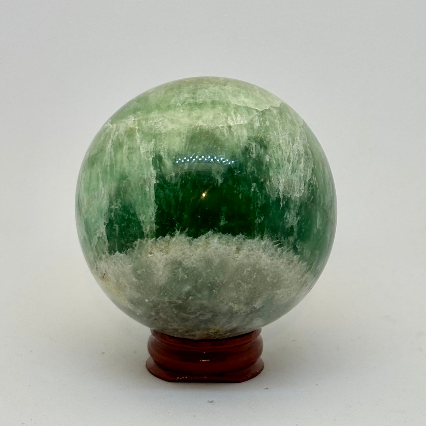 Her er en rigtig flot Grøn fluorit kugle Så frisk og klar.