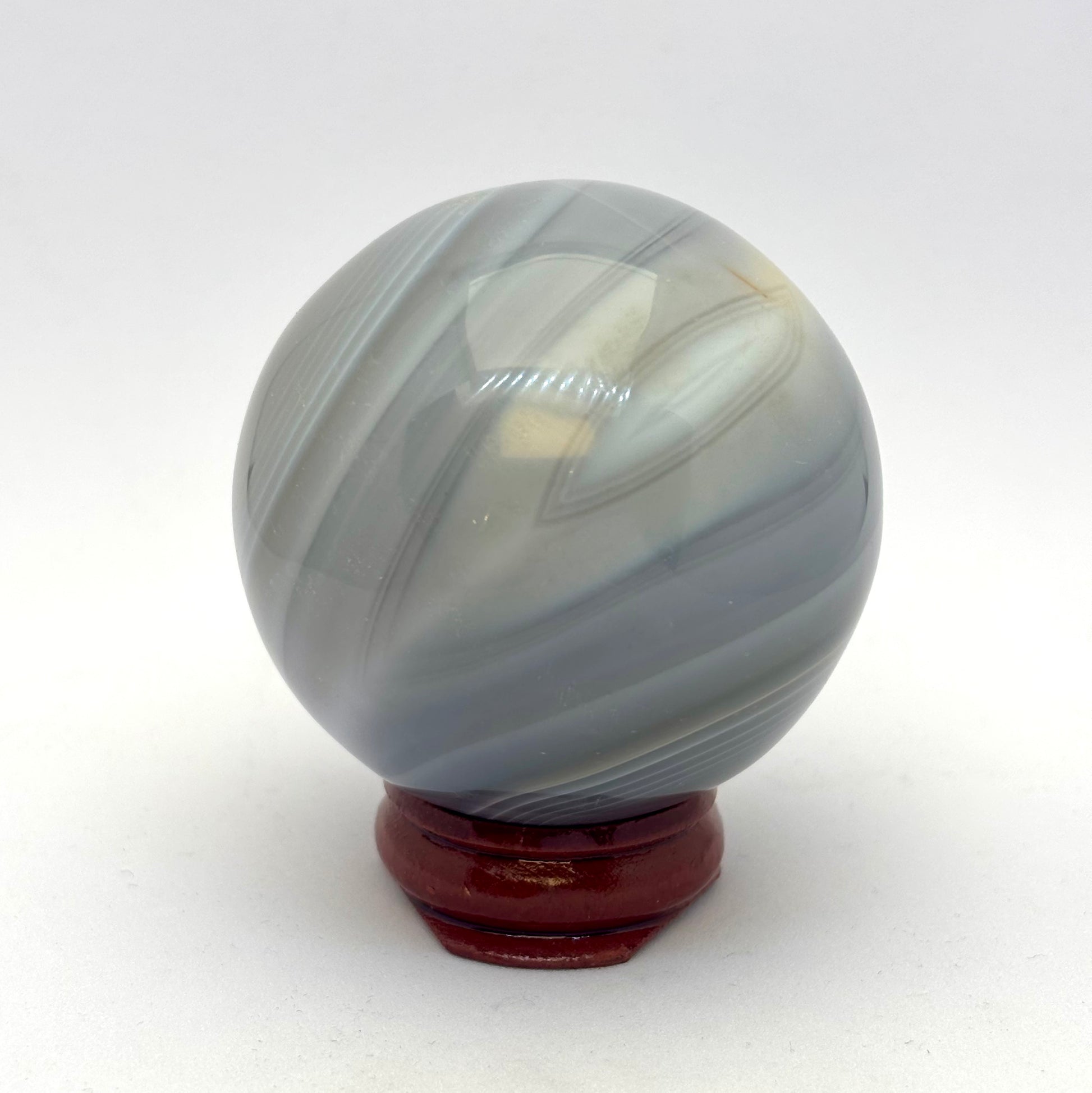Smuk blid kugle af lys grå blå agat med flotte striber.